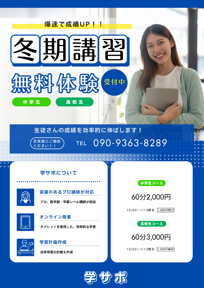学サポは、小・中・高校生を対象としたマンツーマン個別指導・オンライン専門塾です。